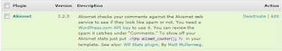Gambar Plugin Akismet yang telah diaktifkan pada Wordpress CMS