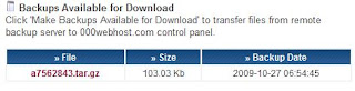 - Anda juga akan melihat muncul tombol baru bernama "Make Backups Available for Download". Jika Anda ingin men-download hasil backup-an tersebut ke komputer Anda, klik terlebih dahulu tombol tersebut agar backup-an website Anda bisa di-download. Jika berhasil, maka pada tabel yang ada di bagian "Backups Available for Download" akan terlihat backup-an file website Anda. Silahkan klik nama file tersebut untuk men-download-nya.